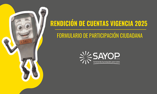 Con el firme propósito de fortalecer la transparencia administrativa y fomentar el control social, la empresa del servicio de alumbrado público de Yopal, SAYOP S.A.S. E.S.P., anuncia el inicio de las actividades preparatorias para su audiencia pública de Rendición de Cuentas correspondiente a la vigencia 2025.